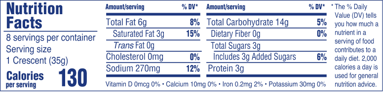 Welcome to a fresh take on baking. Airy, soft, and perfectly golden – JusRolâ„¢ Crescent Rolls are a deliciously simple upgrade. Made with no artificial flavors or colors, they bake up irresistible every time. Just unroll, shape, and bake for crescent rolls that disappear as fast as they hit the table.